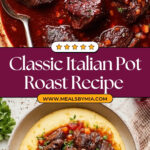 This Italian Pot Roast recipe features tender, slow-braised chuck roast cooked with pancetta, aromatic vegetables, and red wine. Finished with fresh herbs and served with creamy mashed potatoes or egg noodles, it’s a comforting and flavorful meal perfect for family-style dining.