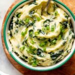 - Finish and Garnish: Add 2 tablespoons of the sliced green onions and stir to incorporate evenly. Transfer the mashed mixture to a serving bowl, top with pats of butter, and sprinkle with the remaining tablespoon of green onions. Serve warm.