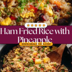 This delicious Leftover Ham Fried Rice with Pineapple is a quick and flavorful stir-fried dish that transforms simple leftover ingredients into a satisfying meal. It combines savory ham, sweet pineapple, and colorful bell peppers with fluffy rice and scrambled eggs, all tossed in a tangy soy and pineapple juice sauce for a delightful balance of flavors.