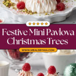 These mini pavlova trees are the star dessert, so I usually keep sides light and fresh—think a mixed berry salad or a simple citrus sorbet to cleanse the palate between bites. A cup of peppermint tea or mulled wine pairs beautifully on a chilly winter evening too.