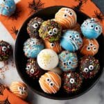 I’m a sucker for the classic candy eyeballs— they give these cake balls such character! But I also love adding colorful sprinkles or a drizzle of contrasting candy melt colors for extra flair. When I made these for a Halloween party, my kids had a blast choosing their favorite spooky decorations to customize them.