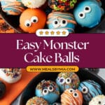 Delight in these fun and festive Monster Cake Balls made with moist yellow cake, creamy vanilla frosting, and colorful candy melts. Perfectly bite-sized and decorated with candy eyeballs and sprinkles, these treats are sure to be a hit at any party or Halloween celebration.