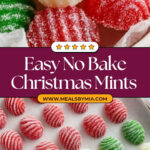 These No-Bake Christmas Mints are a festive and easy-to-make holiday treat that requires no baking. Made with cream cheese, butter, corn syrup, peppermint extract, and powdered sugar, these colorful candies are rolled, shaped, coated in sugar, and left to firm up for a perfect melt-in-your-mouth texture. Ideal for gifting or enjoying at holiday gatherings, they come in classic red, green, and white colors with charming fork-tine stripes on top.