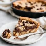After it cools to room temperature, I store leftovers in an airtight container at room temp for up to 3 days. If you can resist, that is! The cookie stays soft but develops a slightly chewier crust, which I actually enjoy.