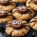 These Peanut Butter Spider Cookies are a fun and festive treat perfect for Halloween. Soft, chewy peanut butter cookies are topped with mini Reese’s Peanut Butter Cups and decorated with melted chocolate legs and candy eyeballs to create a spooky spider effect. Easy to make and irresistible, they’re great for parties or a seasonal snack.