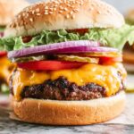 This classic hamburger recipe features juicy grilled patties seasoned with a homemade spice blend and topped with melty American cheese, fresh lettuce, tomato, onion, and pickles on toasted buns. Easy to prepare and perfect for backyard barbecues or quick weeknight dinners.