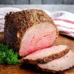 This Bottom Round Roast Beef recipe features a tender and flavorful roast seasoned with a garlic herb beef rub, perfect for a hearty family meal. The roast is initially seared at a high temperature and then slow-roasted to medium rare or medium perfection, resulting in juicy, thinly sliced beef ideal for sandwiches or main dishes.