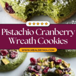 These Pistachio Cranberry Wreath Cookies are delightful buttery treats perfect for festive occasions. Featuring a tender crumb enriched with chopped pistachios and dried cranberries, these cookies are shaped into charming wreaths and lightly dusted with powdered sugar for a beautiful holiday presentation.