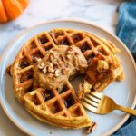 For holiday brunches or celebrations, I’ve layered these pumpkin waffles with mascarpone and drizzled caramel sauce to create a fun dessert-style stack. Another fun idea is to cut the waffles into bite-sized pieces and serve them on skewers with fruit and whipped cream for a playful finger food. Little touches like edible flowers or cinnamon sticks add charm if you’re hosting friends or family.