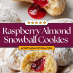 Delight in these Raspberry-Filled Almond Snowball Cookies, a perfect blend of tender almond and all-purpose flours with a luscious raspberry jam center. Coated in powdered sugar, these cookies offer a sweet, nutty flavor with a soft, melt-in-your-mouth texture, ideal for tea time or festive occasions.