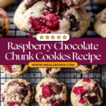 Delight in these Raspberry Chocolate Chunk Cookies, a perfect balance of sweet dark chocolate and tart raspberries folded into a buttery, soft cookie. Baked to golden perfection, these cookies are ideal for any occasion, offering a burst of fruity flavor and rich chocolate in every bite.