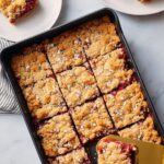 - Bake the bars: Place the pan in the preheated oven and bake for 30 to 35 minutes until the topping is golden brown and the edges are set.