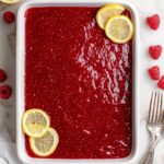 - Serve: Before serving, spread the remaining raspberry jam evenly on top. Garnish with fresh raspberries and lemon slices for a fresh, colorful presentation.