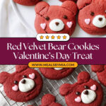 These adorable Red Velvet Valentine’s Day Bear Cookies combine a soft, chewy red velvet cookie base with charming chocolate decorations that create cute bear faces. Perfect for a festive treat, these cookies are made with a simple dough enriched with cocoa and a touch of vinegar for classic red velvet flavor, then delicately decorated with melted chocolate and colored accents to celebrate the season of love.