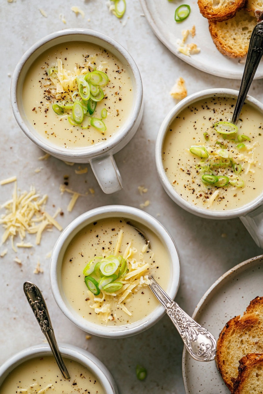 - Garnish and serve: Ladle the soup into bowls, garnish with sliced green onion and extra cheddar cheese. Serve with croutons or your favorite toasted sourdough bread for dipping. Enjoy warm and comforting, serves 4.