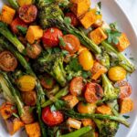 This vibrant Sheet Pan Roasted Vegetables recipe features sweet potatoes, broccoli, asparagus, and cherry tomatoes perfectly seasoned and roasted to tender, caramelized perfection. A simple, healthy, and delicious side dish that’s easy to prepare and ideal for meal prepping or weeknight dinners.