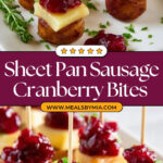 Delicious and easy-to-make Sheet Pan Smoked Sausage Cranberry Bites featuring tender smoked sausage slices topped with creamy white cheddar and sweet whole cranberries, baked to perfection and garnished with fresh parsley. Perfect as a crowd-pleasing appetizer or party snack.