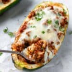 I always store leftover lasagna boats in an airtight container in the fridge for up to 3 days. When you scoop them out, they’re best gently reheated in the oven or air fryer to keep the cheese melty and the squash from becoming too soggy. Avoid microwaving if you want to maintain the best texture.