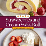 A light and airy Swiss roll cake filled with a luscious strawberries and cream filling, combining a soft vanilla sponge cake with tangy cream cheese, sweet whipped topping, and fruity strawberry jam. Perfectly dusted with powdered sugar and garnished with fresh strawberries for an elegant dessert.