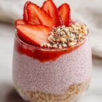 This refreshing and healthy Strawberry Crumble Chia Pudding combines creamy strawberry-infused chia pudding with a crunchy almond date crumble topping. Using blended frozen strawberries with plant-based yogurt and soy milk, it creates a naturally sweet and flavorful base, paired with a wholesome, nutty crumble for texture. Perfect for a nutritious breakfast or light dessert, this no-cook recipe is easy to prepare and customizable to taste.