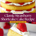 This classic Strawberry Shortcake Cake is a delightful layered dessert featuring moist homemade cake layers, fresh macerated strawberries, and luscious whipped cream. Perfect for celebrations or a special treat, this recipe combines a tender cake with the natural sweetness and juiciness of strawberries, topped with airy, slightly sweetened whipped cream.