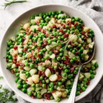 - Serve: Transfer the pea mixture to a large serving bowl. Top with the remaining pancetta and garnish with lemon zest for a bright finishing touch. Serve warm as a delicious side dish that complements any holiday meal.