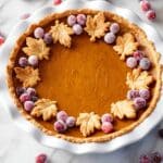 - Make Ahead & Freezing: Pumpkin pie and pie dough freeze well for up to 3 months. Thaw overnight in the refrigerator before use. Sugared cranberries should be prepared the night before pie assembly. The pie filling can also be made ahead and refrigerated overnight to meld flavors.