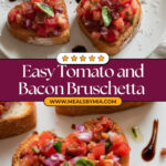 This Easy Tomato and Bacon Bruschetta is a delicious, quick appetizer that combines crispy toasted baguette slices with a fresh, flavorful topping of cherry tomatoes, red onion, basil, and savory bacon. Perfect for parties or a light snack, it features a delightful balance of textures and colors with an optional balsamic glaze drizzle for added tang.