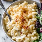 In a skillet, combine the breadcrumbs or panko with melted butter and a splash of truffle oil. Cook over medium-high heat, stirring constantly until the crumbs turn golden brown and toasty — this step amps up the flavor and crunch like nothing else. Sprinkle this evenly over your mac and cheese just before baking.