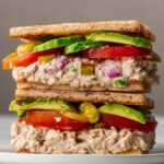 Spread a generous layer of your spicy pesto aioli on each slice of toasted bread, then evenly distribute the whipped tuna salad on two pieces. Layer with slices of ripe tomato and avocado—don’t be shy with the avocado, as it adds that luscious, buttery feeling with every bite. If you love a bit of briny heat, add some pickled banana peppers on top. Close the sandwiches, slice in half, and get ready to impress your taste buds.