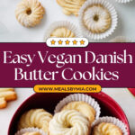 These Vegan Danish Butter Cookies are a delightful dairy-free treat perfect for any occasion. Made with a dairy-free buttery spread and vanilla, these crisp yet tender cookies are easy to prepare and bake. They deliver a classic buttery flavor and delicate crumb without any animal products, making them an ideal vegan dessert option.