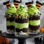 If you’re looking for a show-stopping Halloween treat that’s as fun to make as it is to eat, you’re going to adore this Witches Brew Halloween Cake Jars Recipe. Imagine layers of rich black cocoa cake and vibrant green buttercream, all nestled in adorable little jars, topped with expertly crafted fondant witches’ legs and shoes! I absolutely love how this turns out – it’s spooky, sweet, and totally irresistible. Stick with me, and I’ll show you how to nail every detail so your Halloween party guests will be wowed.